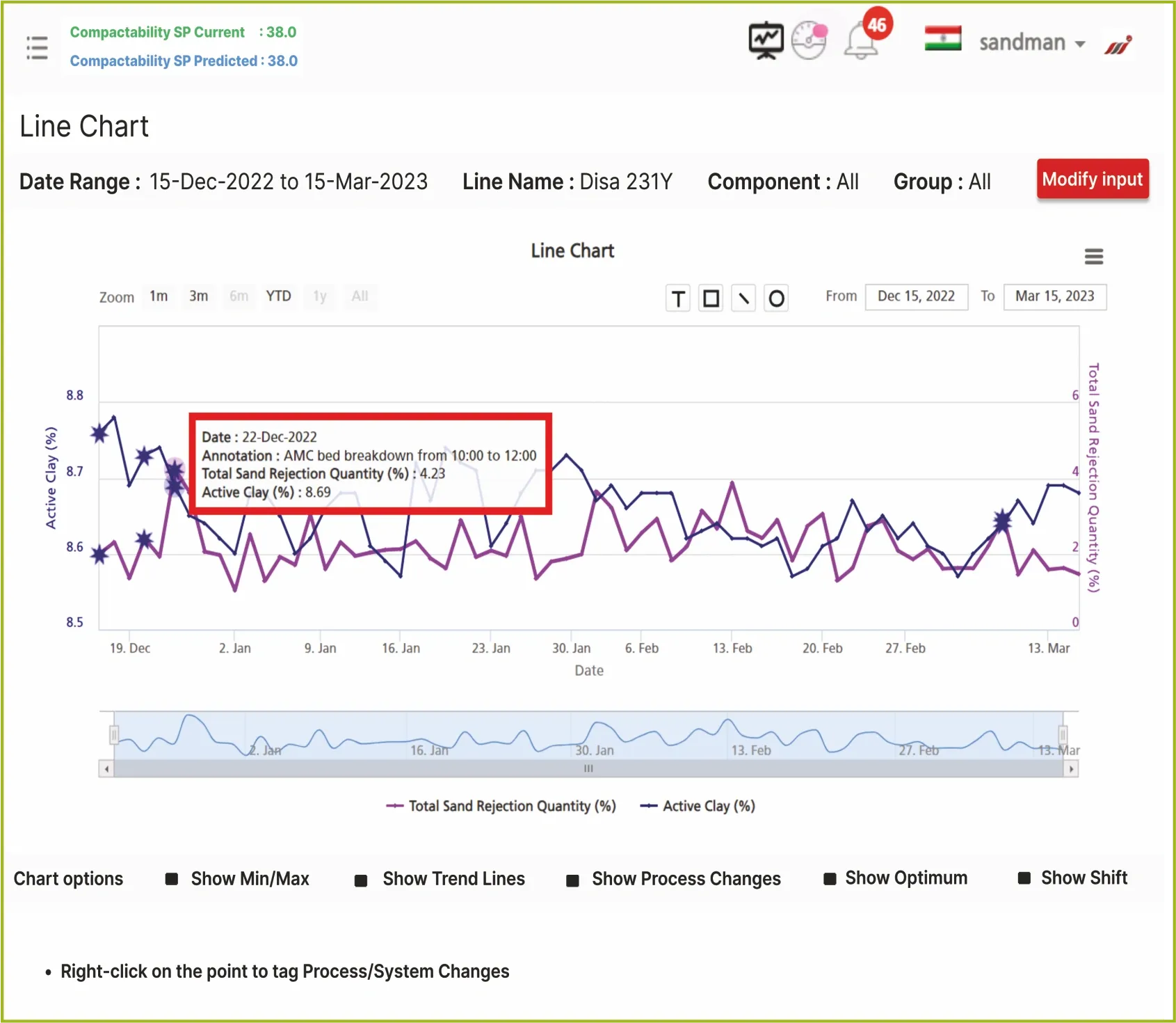 As managers age, change and move on, their shop floor experience often moves out with them or is available in limited formats. To overcome this inevitability, a UNIQUE feature of ANNOTATIONS is offered by Sandman which enables you to record shop floor, System-Sand related experiences and events so as to assist you in future situations for informed and legacy data-based decision making.