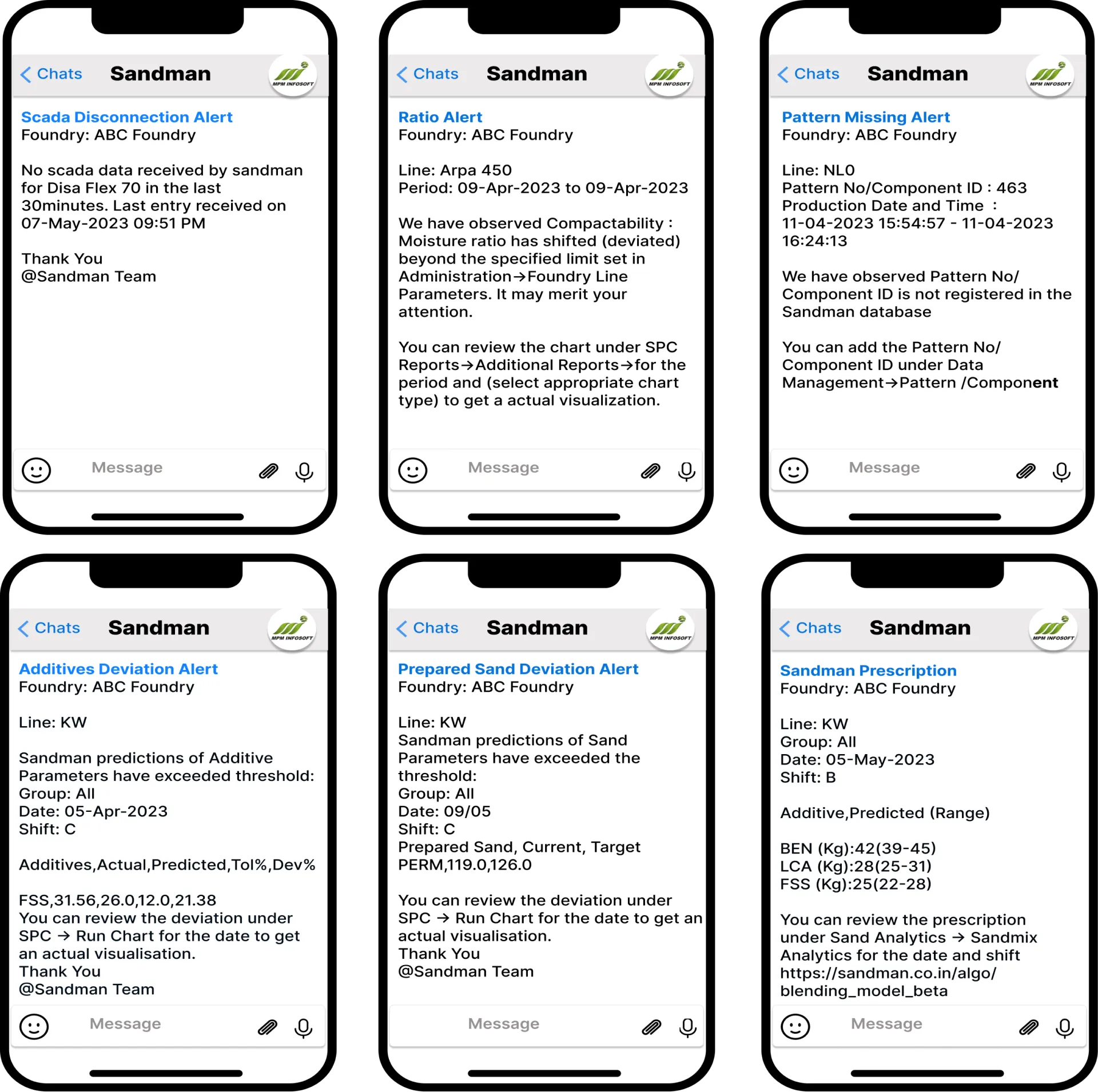 Process, sand properties, additive addition and quality deviations, and many more system alerts