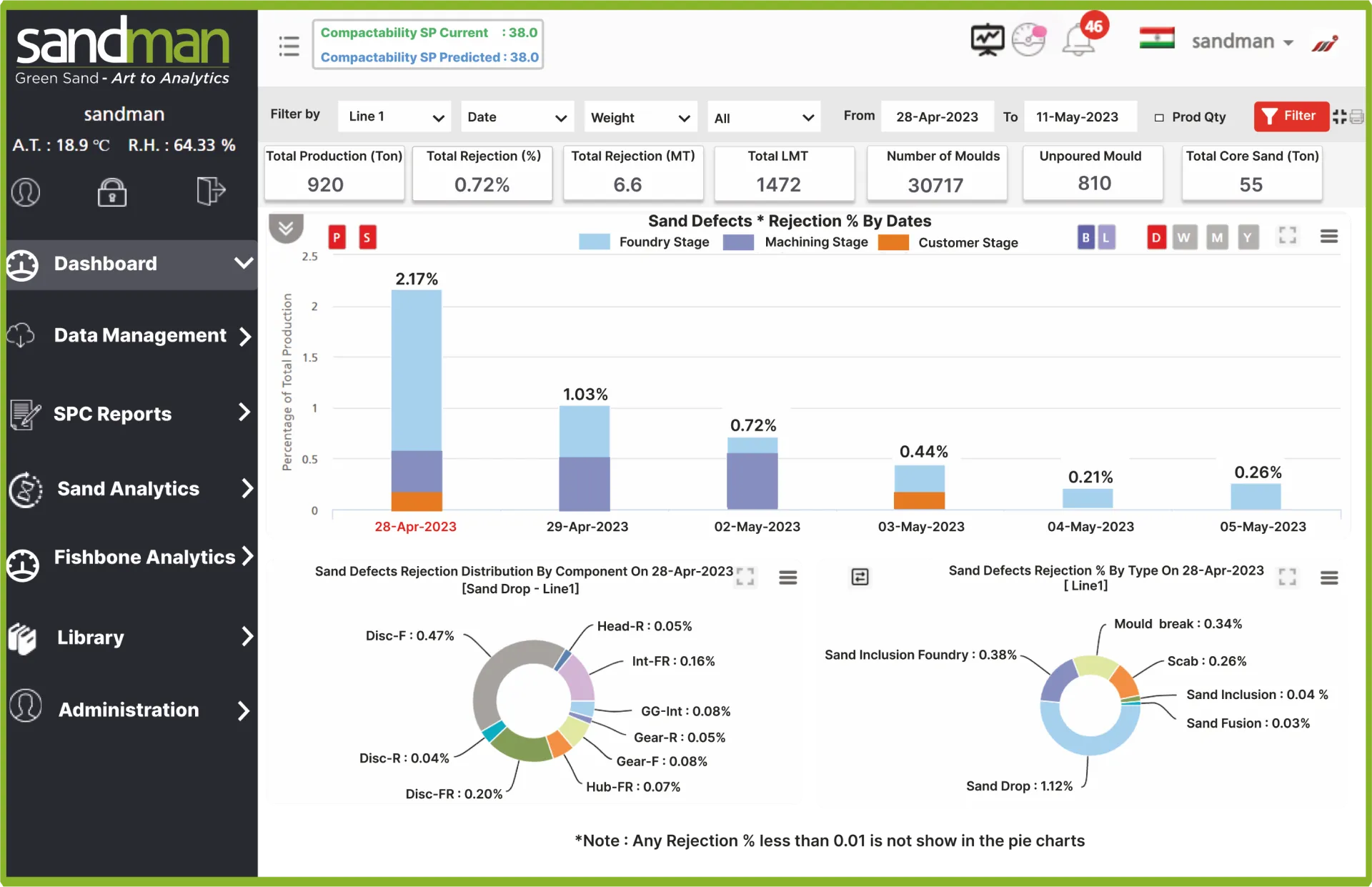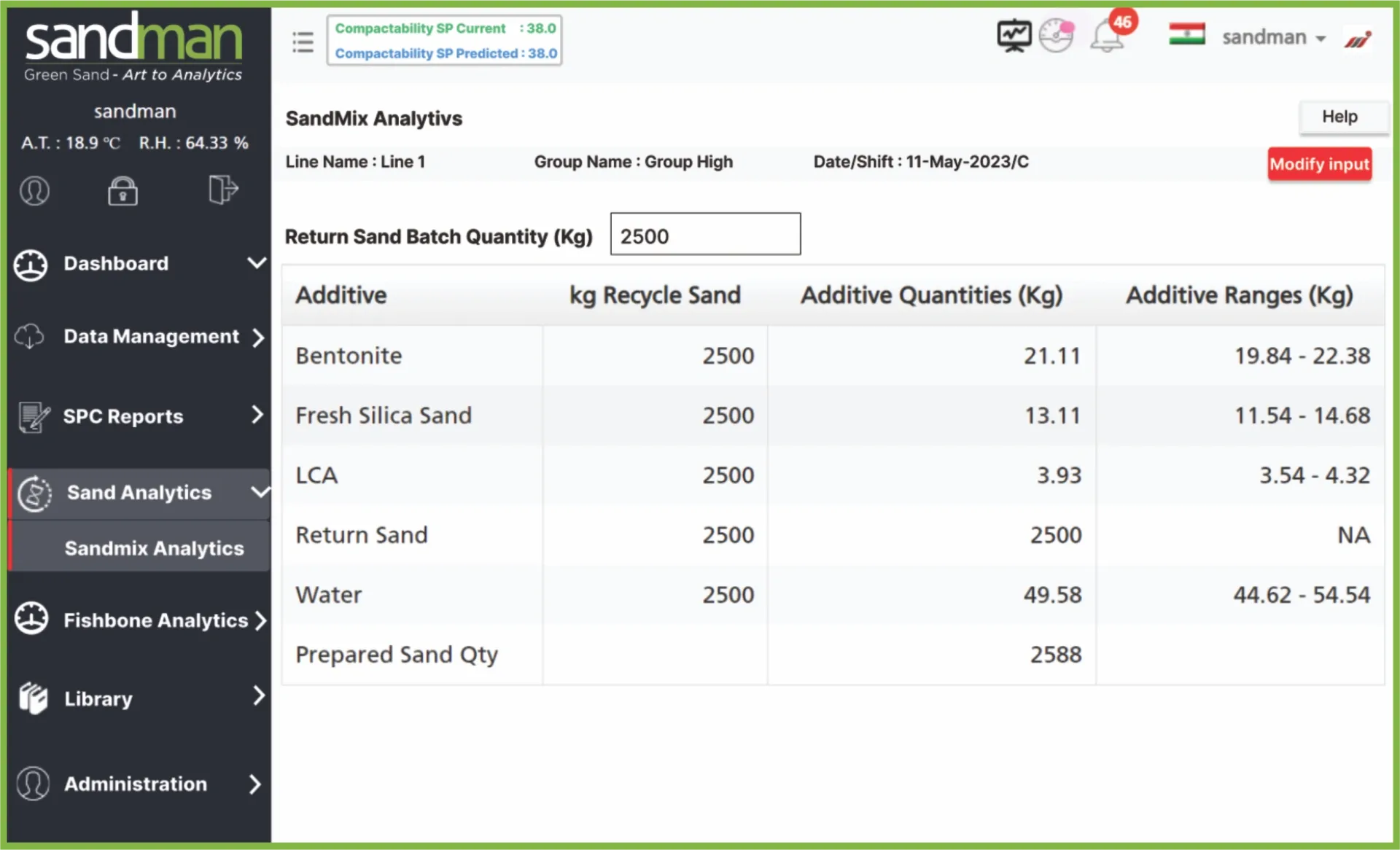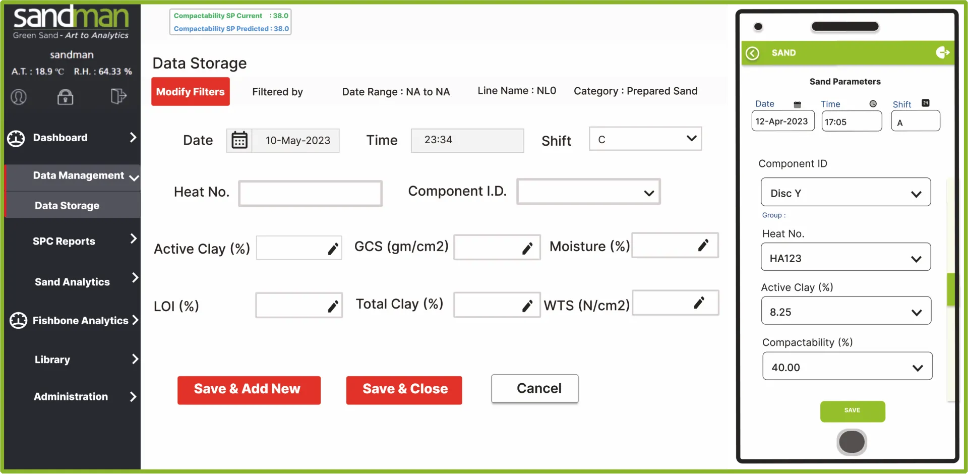 SANDMAN® organizes, stores, validates, analyzes, and leverages the foundry's molding-sand data legacy for molding process optimization, using prescriptive and predictive data analytics. This enables the user foundry to move from reactive to proactive green sand control and management, and by corollary, reduce sand related repetitive casting rejections & additives consumption.