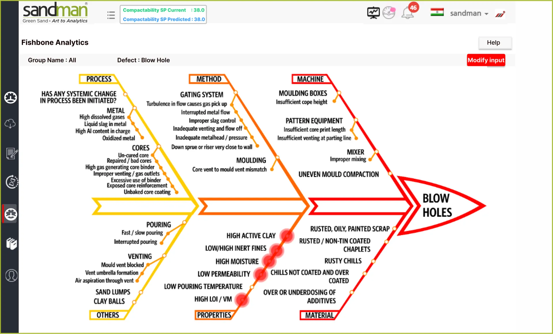 SANDMAN® leverages advanced statistical tools and techniques to provide a faster and more efficient Root Cause Analysis based on Fishbone/Ishikawa diagrams. By analysing deviations in sand properties between good and poor performance periods in virtual real-time, our solution helps process-owners make informed decisions about their green sand processes.